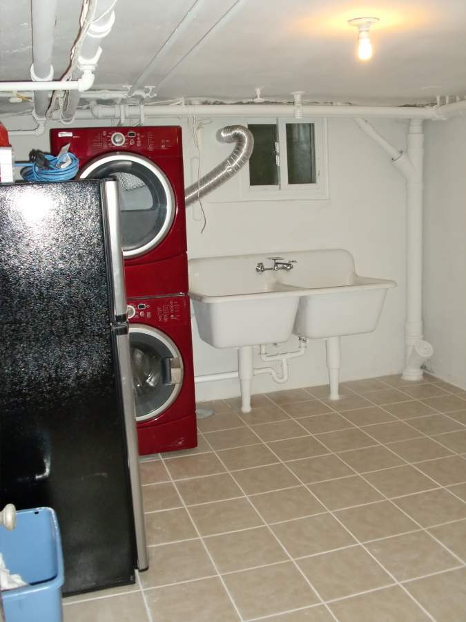 Before, during, and after photos of remodeling work on a basement that had severe water damage. Our services included installation of french drains, sump pump, ceramic tile, waterproofing, painting, and new plumbing.