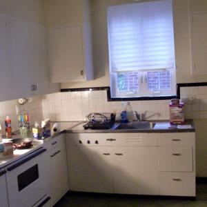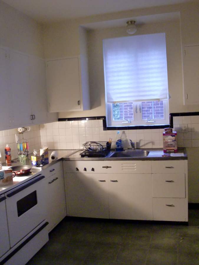 Before, during, and after photos of remodeling work on a very dated kitchen. Our services included removal of the old tile, cabinetry, plaster walls, appliances, sink, flooring, plumbing, and light fixtures. We upgraded the plumbing and electricity, installed new wood hardwood flooring, cabinetry, appliances, light fixtures, sink, and counter top.