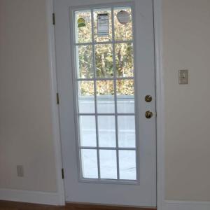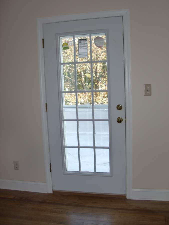 After photo of repaired wall with new storm and 15-light doors