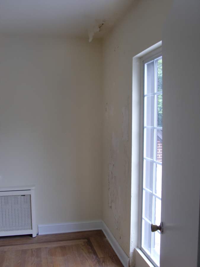 Before photo of window and damaged wall